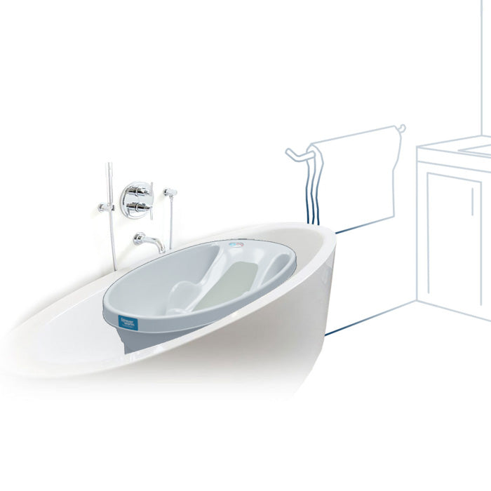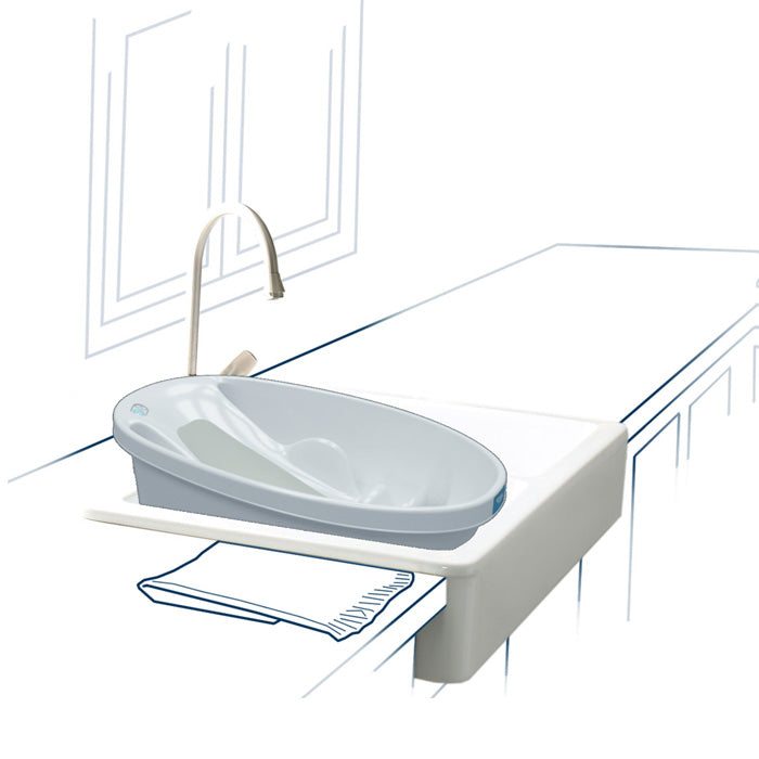 A sleek shaped bath tub with patented technology to keep your baby’s bath at a safe temperature. The tub features ergonomic design with an anti-slip pad, and innovative technology that is designed to transfer heat safely to the bath, while maintaining a safe temperature.