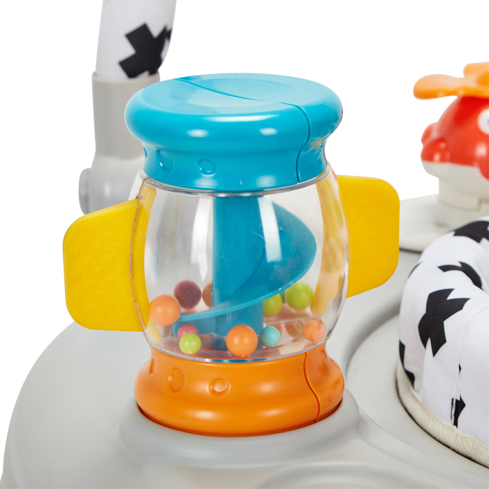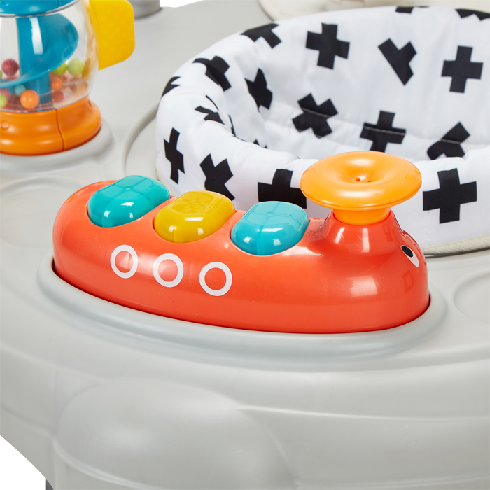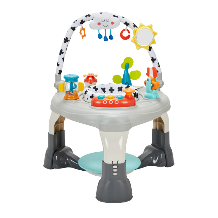 In entertainer mode, the supportive rotating seat gives baby 360-degree access to the play features, with a bounce pad included for fun and physical development.