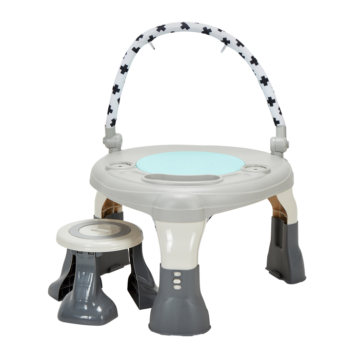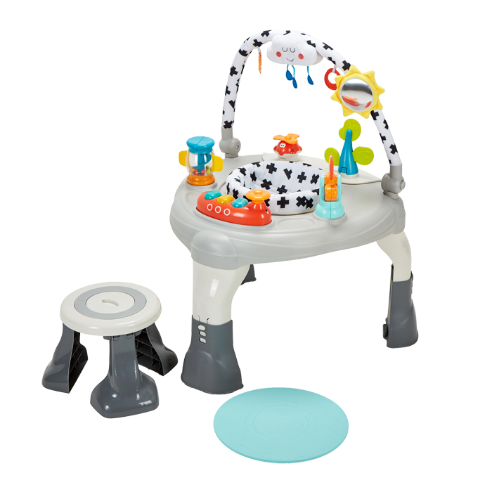 As your child grows and can support their own weight fully, it can be used as a cruising table, and finally, for older toddlers, it converts into a small table and stool, perfect for arts and crafts, tea parties or other games.
