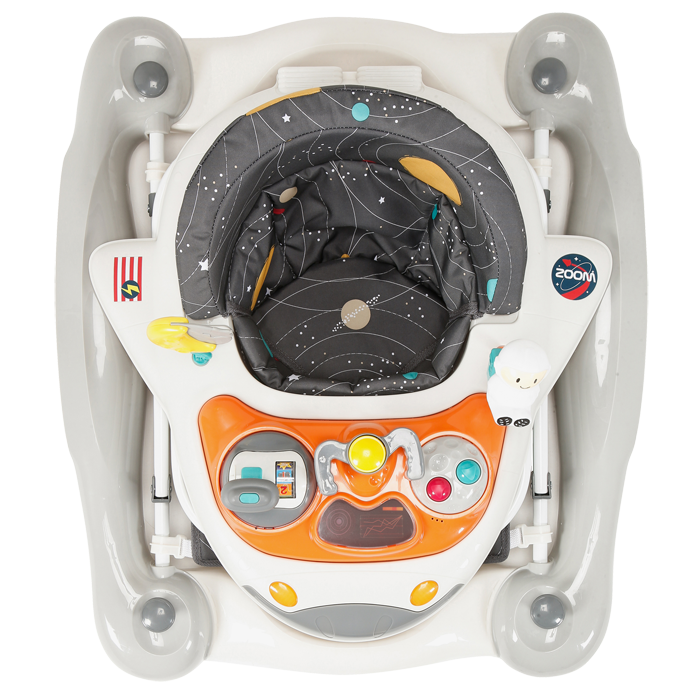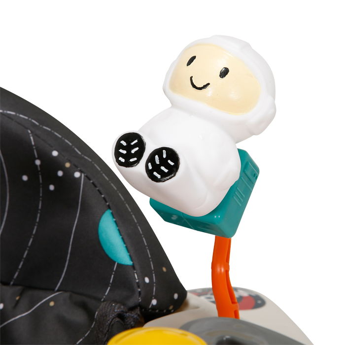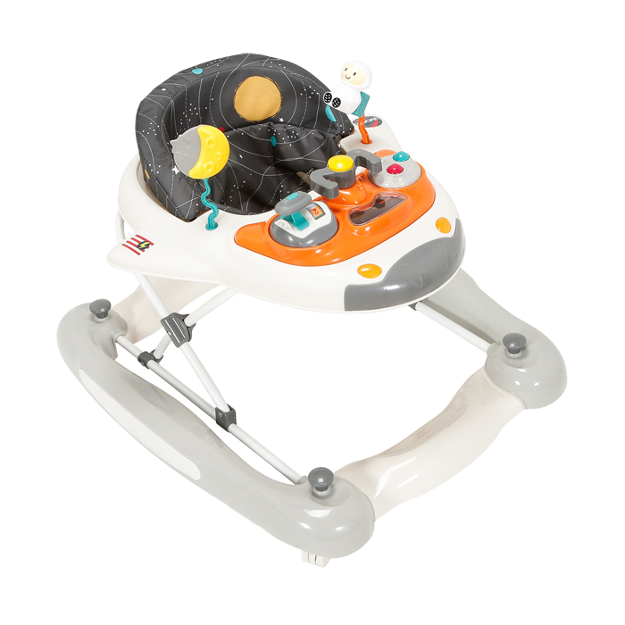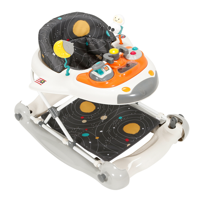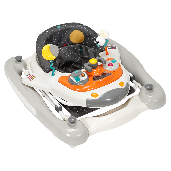 Packed with deep space activities including a musical light-up control panel, steering tiller and thruster, moon teether, countdown spinner plus a squeaky friendly astronaut companion, it promises heaps of fun-filled freedom.