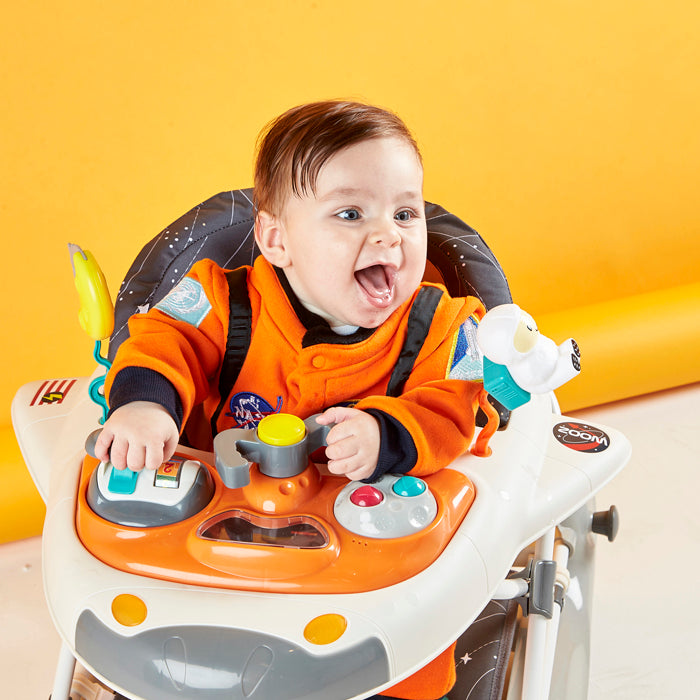 Give your little explorer a cosmic experience onboard our out of this world 2 in 1 space shuttle walker/rocker*.